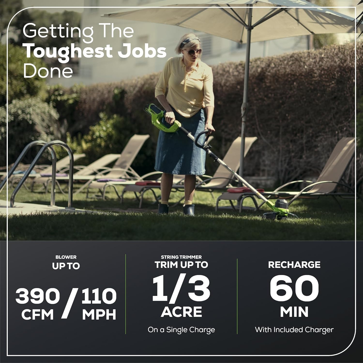 [Walkway Warrior Combo] – 40V trimmer + blaster system clears overgrown edges along driveways/walkways in half the time, boosting curb appeal instantly.